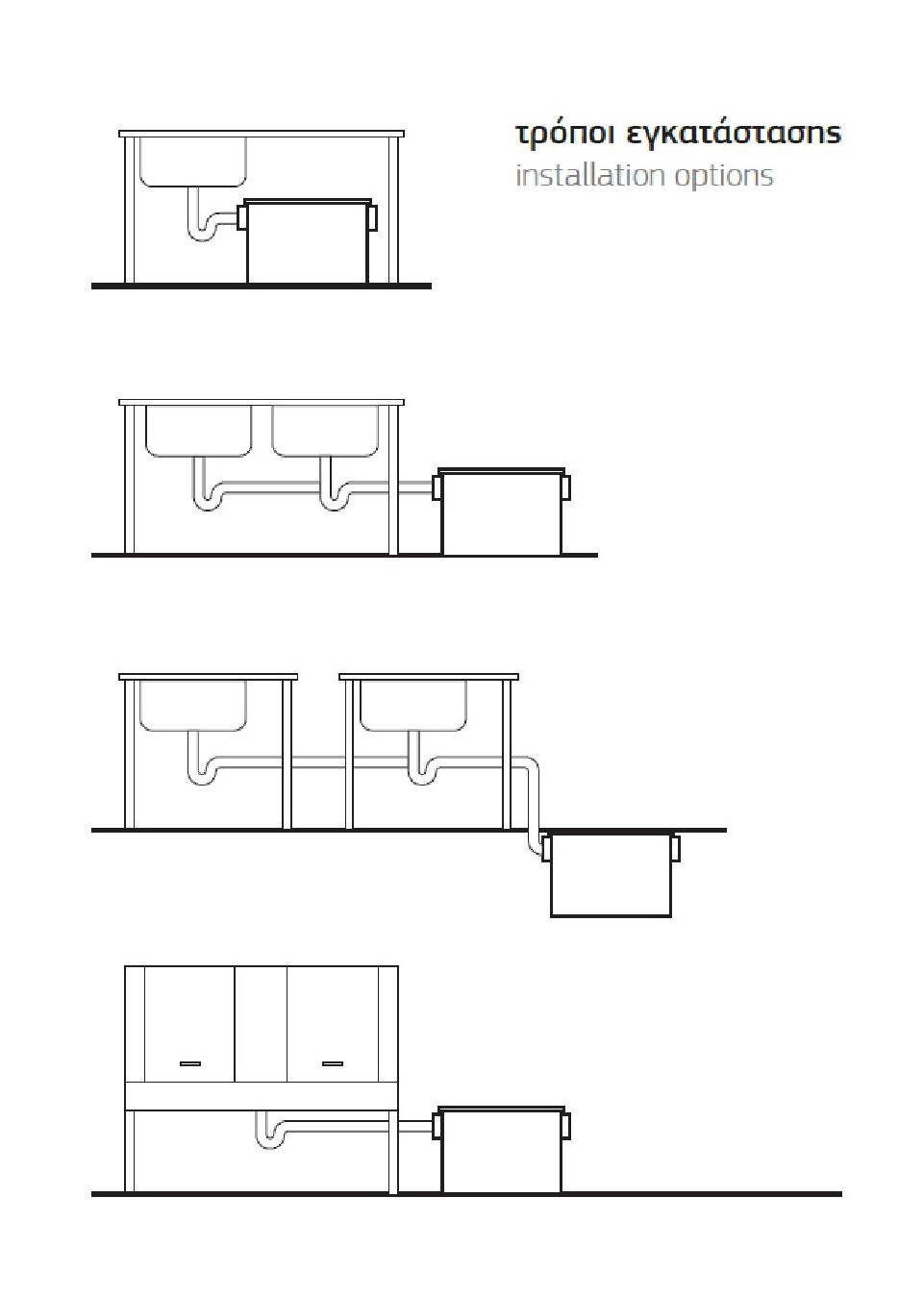 Τοποθετείται κάτω ή δίπλα από τη λάντζα και τα πλυντήρια, για το διαχωρισμό λαδιών-λίπους.