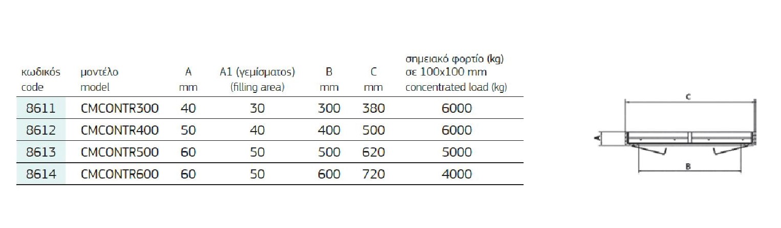 • Με καπάκι με χοντρό πλέγμα για οπλισμό του σκυροδέματος και με βάση - πλαίσιο που αφήνει το άνοιγμα Β.